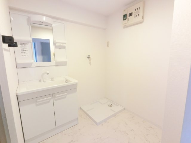 【洗面所】独立洗面台、室内洗濯機置き場です。